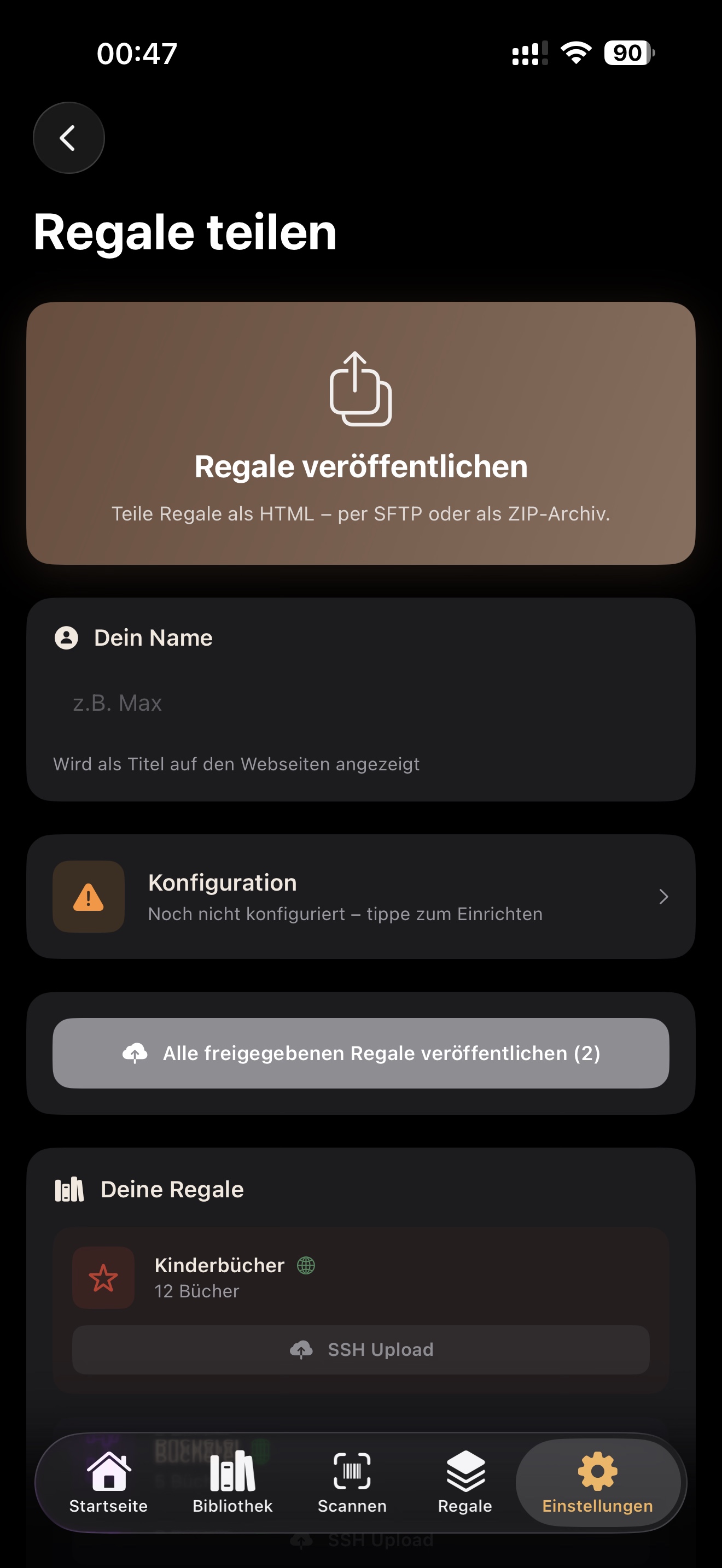 Nur freigegebene Regale werden veröffentlicht. Das ist besonders hilfreich, wenn andere vor einem Geschenk prüfen sollen, welche Bücher bereits vorhanden sind.